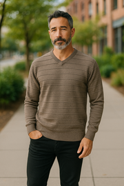 Pure Wool Ansett Patterned V Neck Jumper 8053 Sable