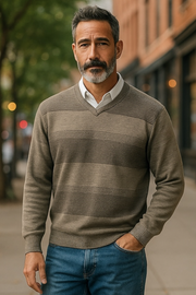 Pure Wool Ansett Patterned V Neck Jumper 8073 Sable