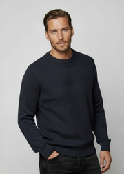 Pure Wool Ansett Patterned Crew Neck Jumper 8802 Navy Blue