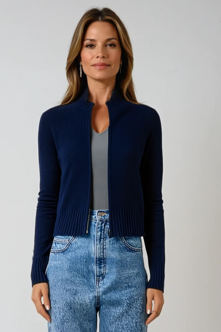 So versatile and easy to wear you will love this new zip-up Jacket with its delicate and feminine Yolk Neck Detail