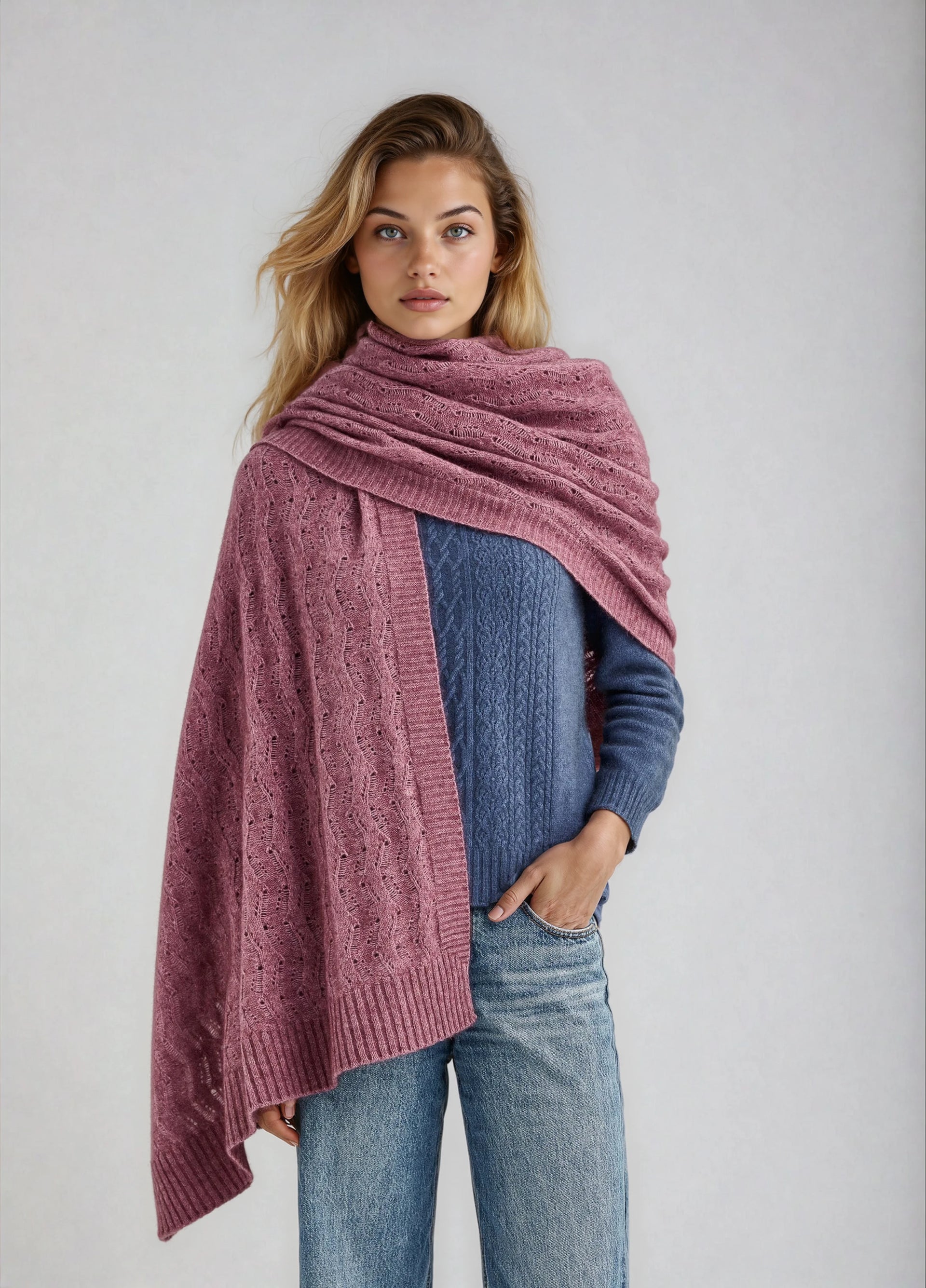 Wrap yourself in luxurious warmth with our Possum Merino Herringbone Lace Shawl, crafted from a premium blend of 35% possum fur, 55% superfine merino wool, and 10% mulberry silk. The intricate herringbone lace pattern offers a sophisticated texture while remaining incredibly lightweight and breathable.